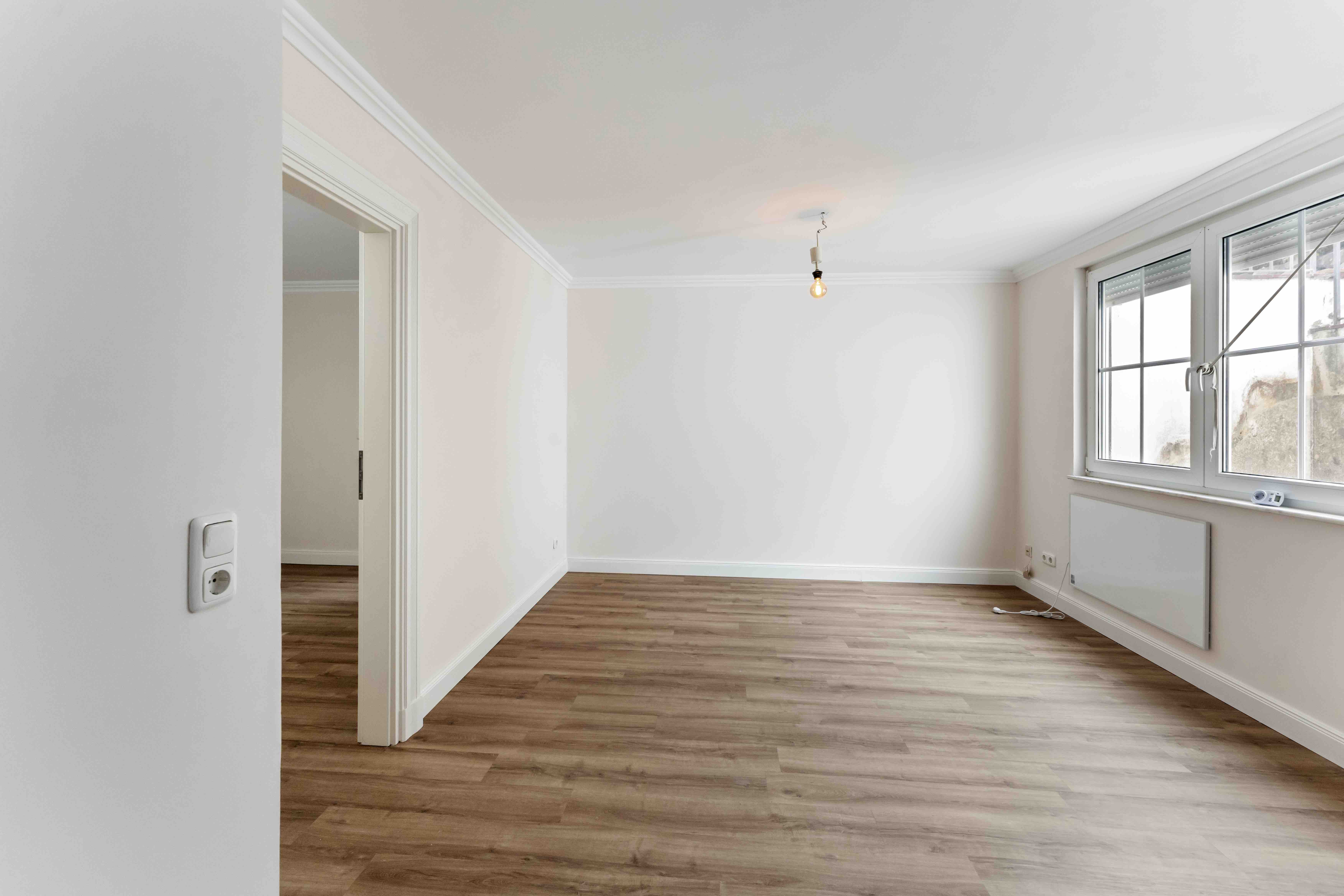 Die Wohnung ist aufgeteilt in eine neue Küche mit Essbereich, ein Schlafzimmer, ein Wohnzimmer und ein Vollbad.